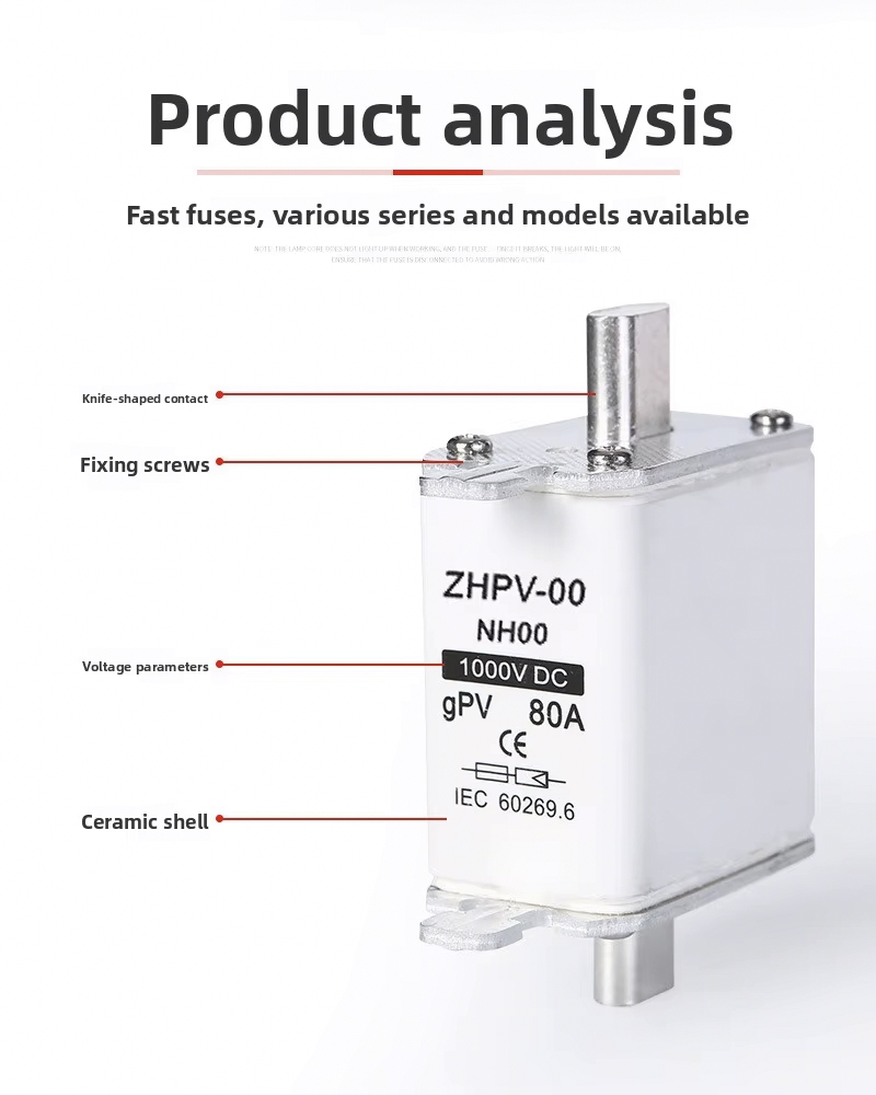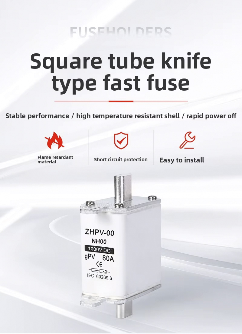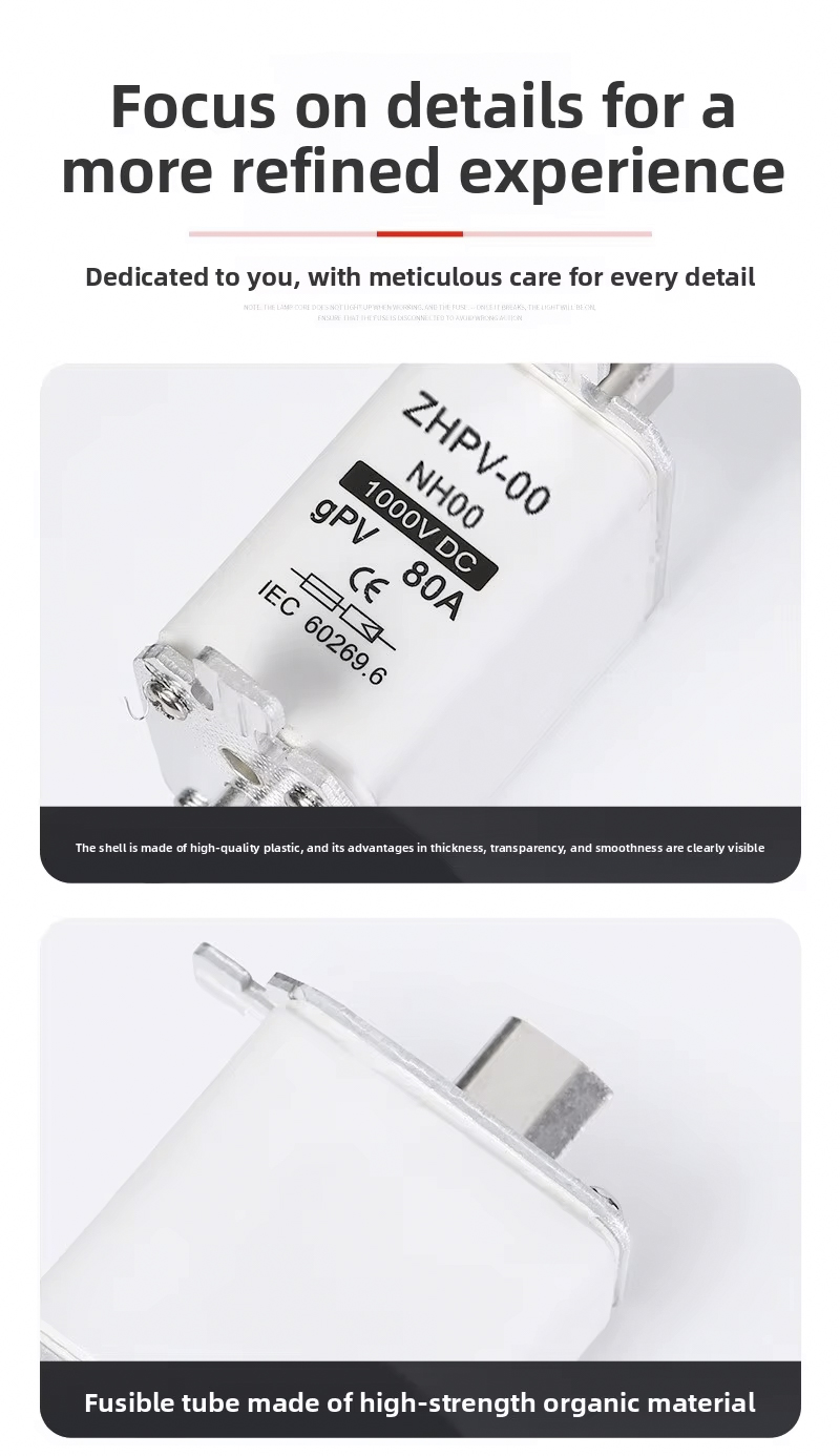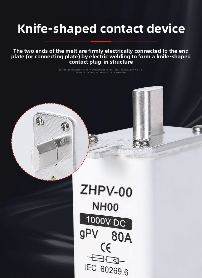 NH00-1000V IEC lavspent fotovoltaisk knivsikring plast 80A 6ka brytekapasitet er designet for effektiv og pålitelig kretsbeskyttelse i solcelleanlegg og andre lavspenningsapplikasjoner. Denne høykvalitetssikringen fungerer opp til 1000V, med en robust brytekapasitet på 6ka, som sikrer sikker frakobling i tilfelle overbelastning eller kortslutning. Dens 80A merkestrøm gjør den egnet for ulike PV-installasjoner og industrielle kontrollpaneler.
