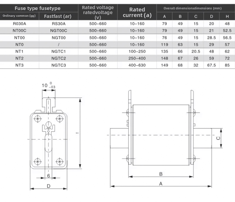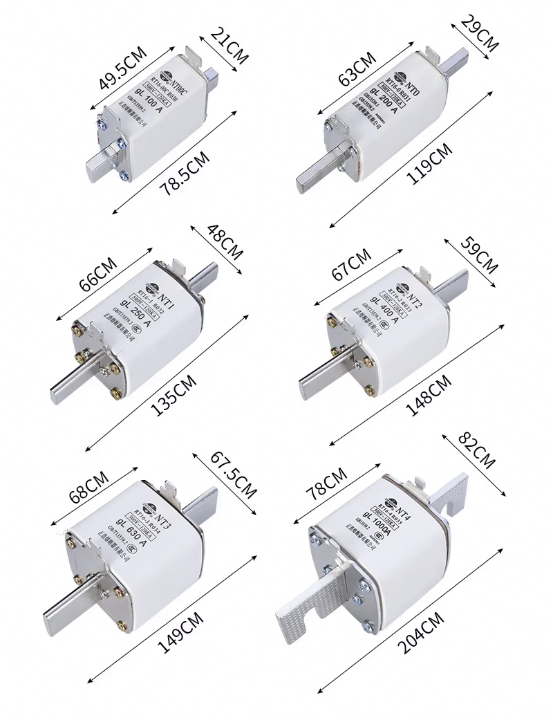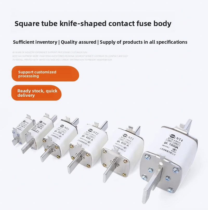 Firkantede keramiske sikringer i NT/NH-serien brukes ofte i industrielt elektrisk utstyr, kraftsystemer og elektronisk utstyr for å beskytte kretser mot overbelastning og kortslutning.