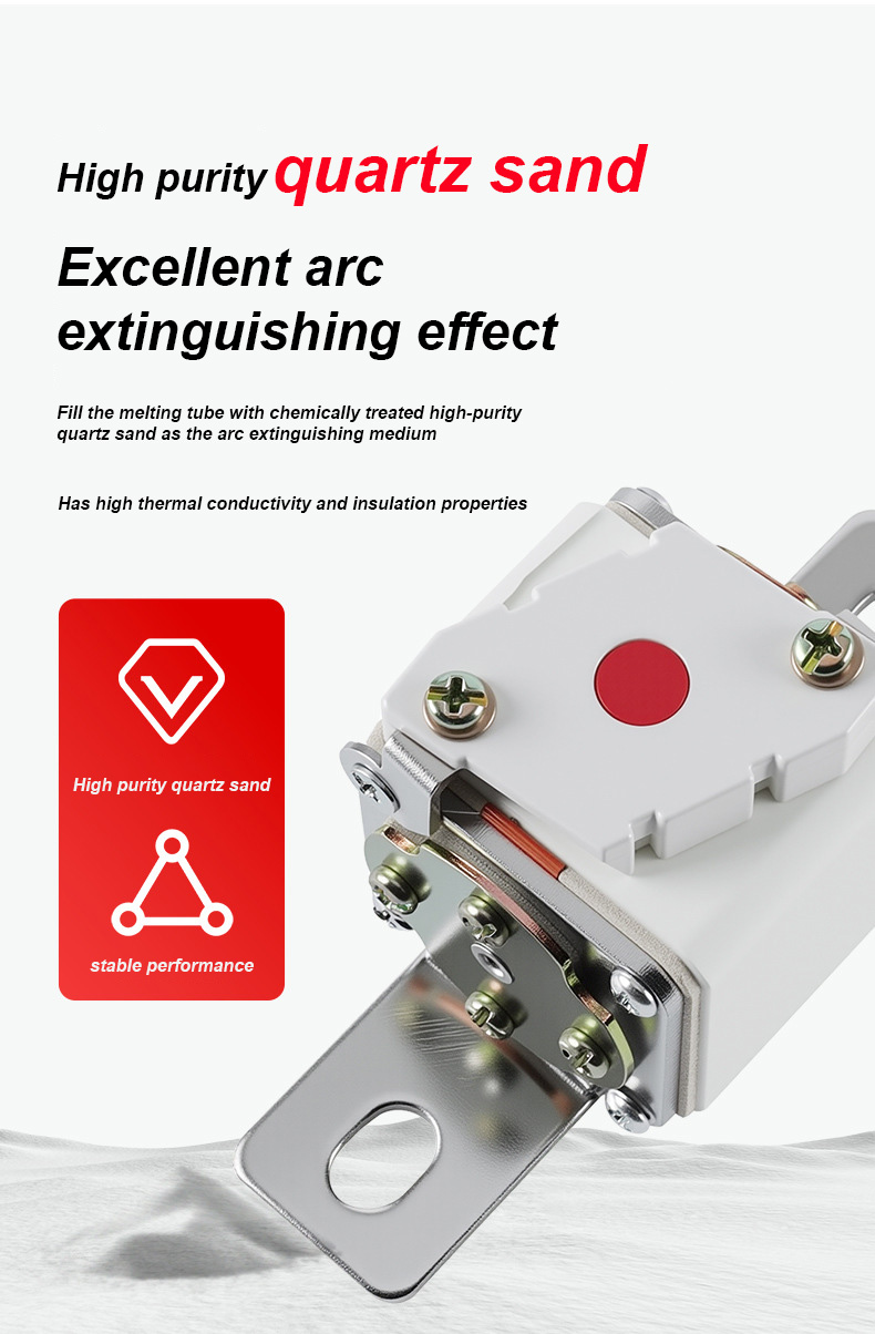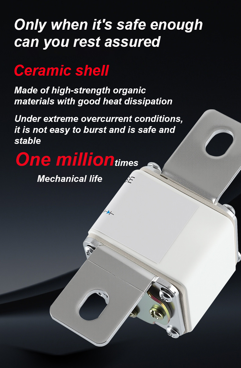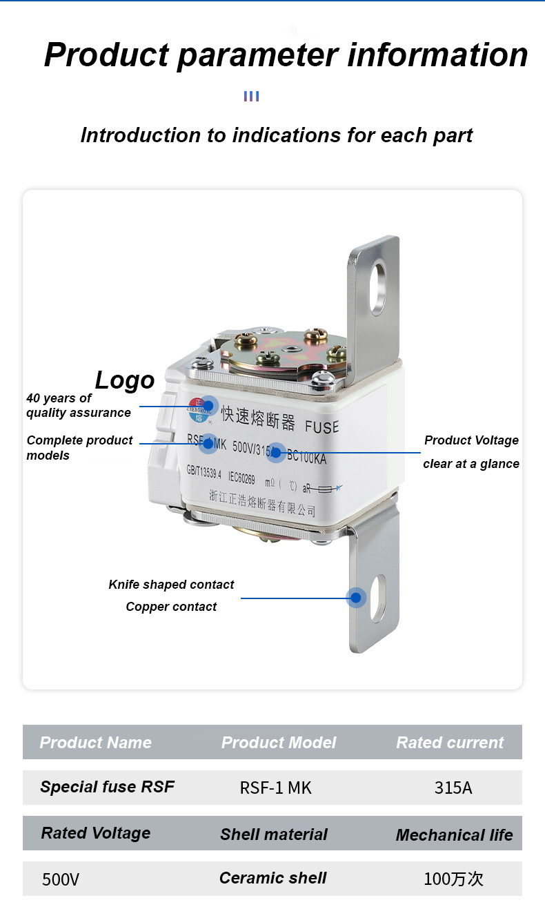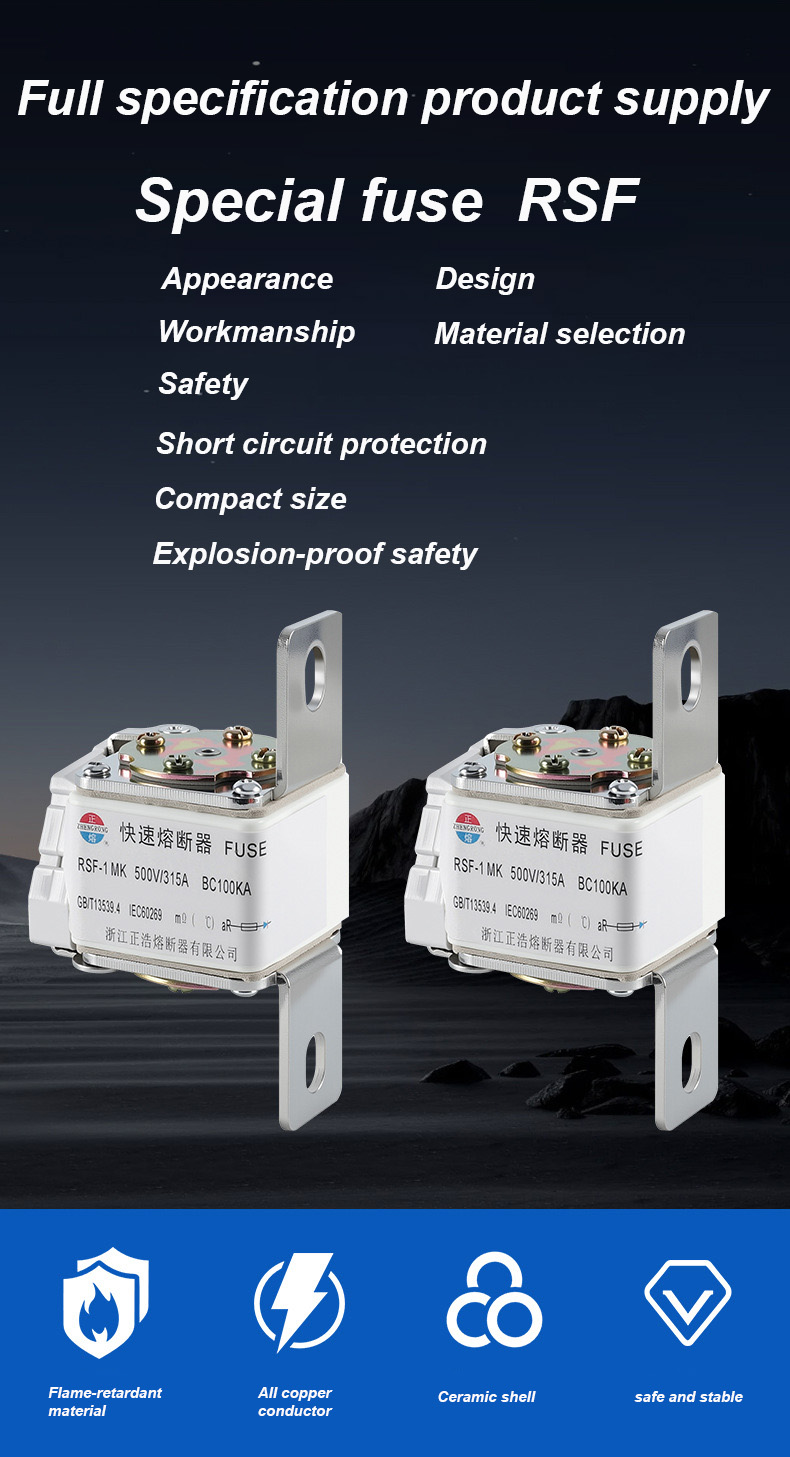 har en merkespenning på 500V og en merkestrøm på 315A, som effektivt kan sikre elektrisk sikkerhet, forhindre overbelastning og kortslutning. RSF-1K 500V-315A BC100KA sikring Links