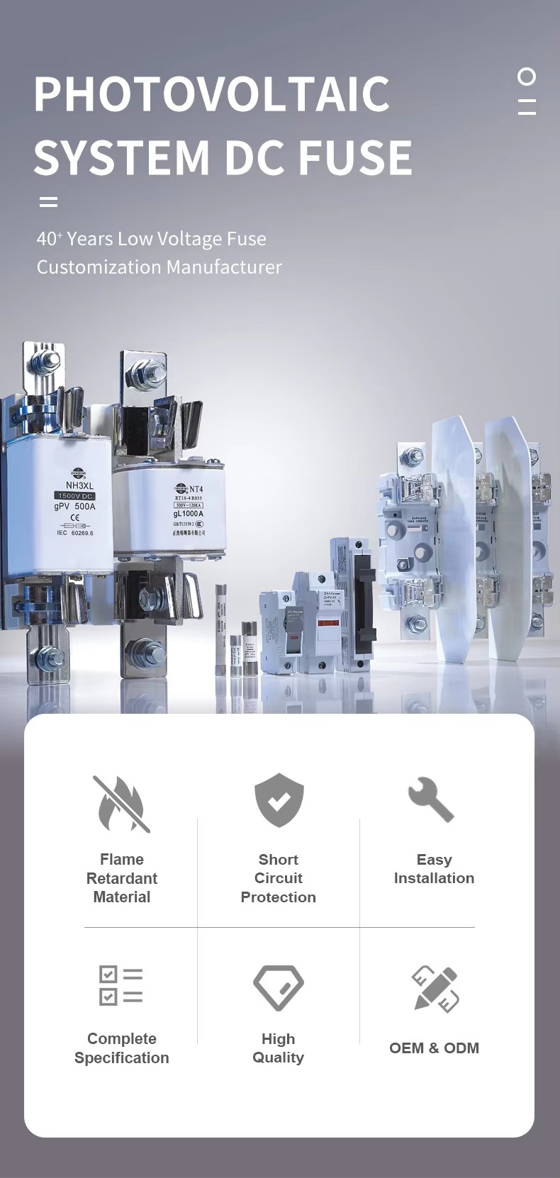 For henvendelser om fotovoltaisk DC -sikring, sylindrisk sikring, firkantet bolt BS88 sikring eller prisliste, vennligst legg e -posten til oss, så vil vi ta kontakt innen 24 timer.