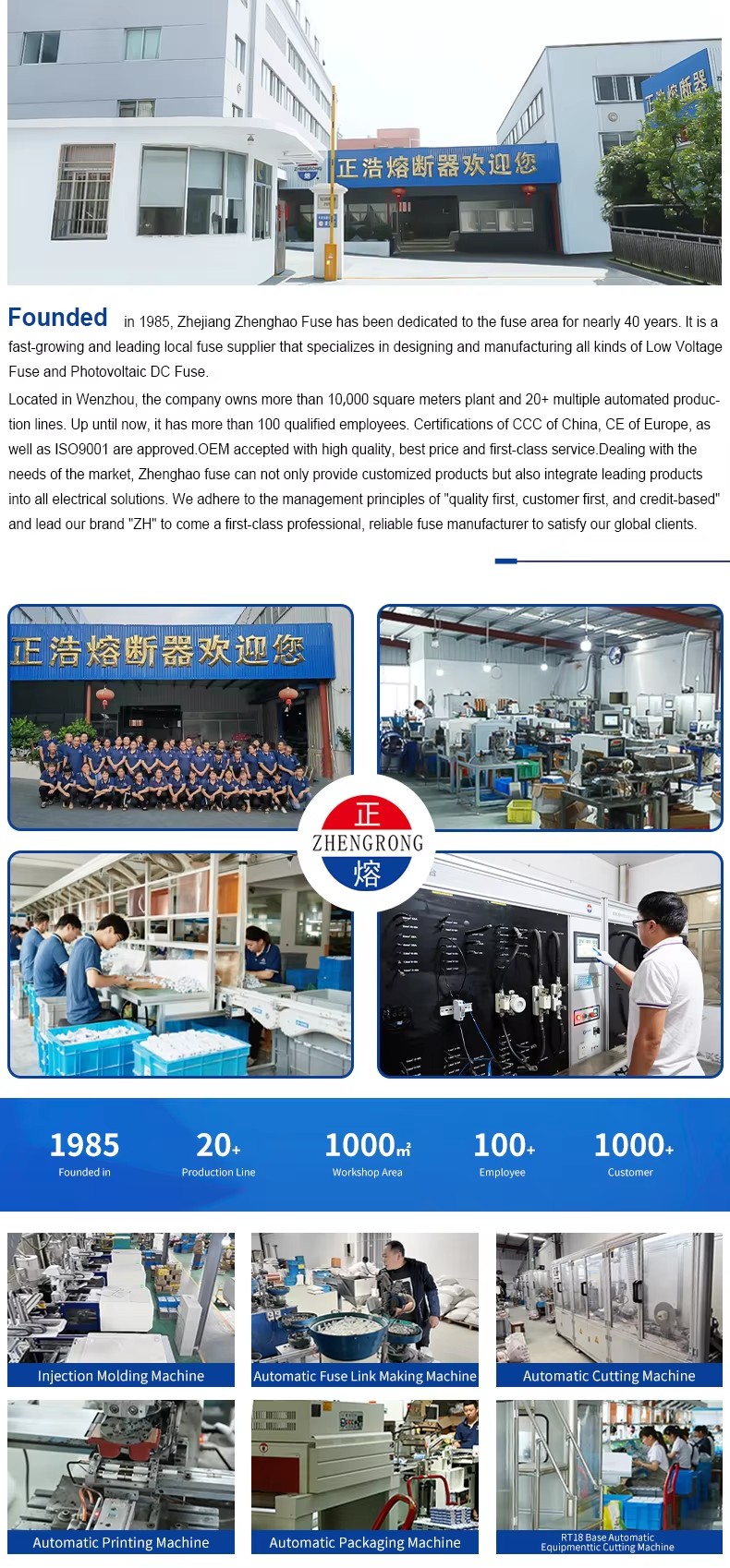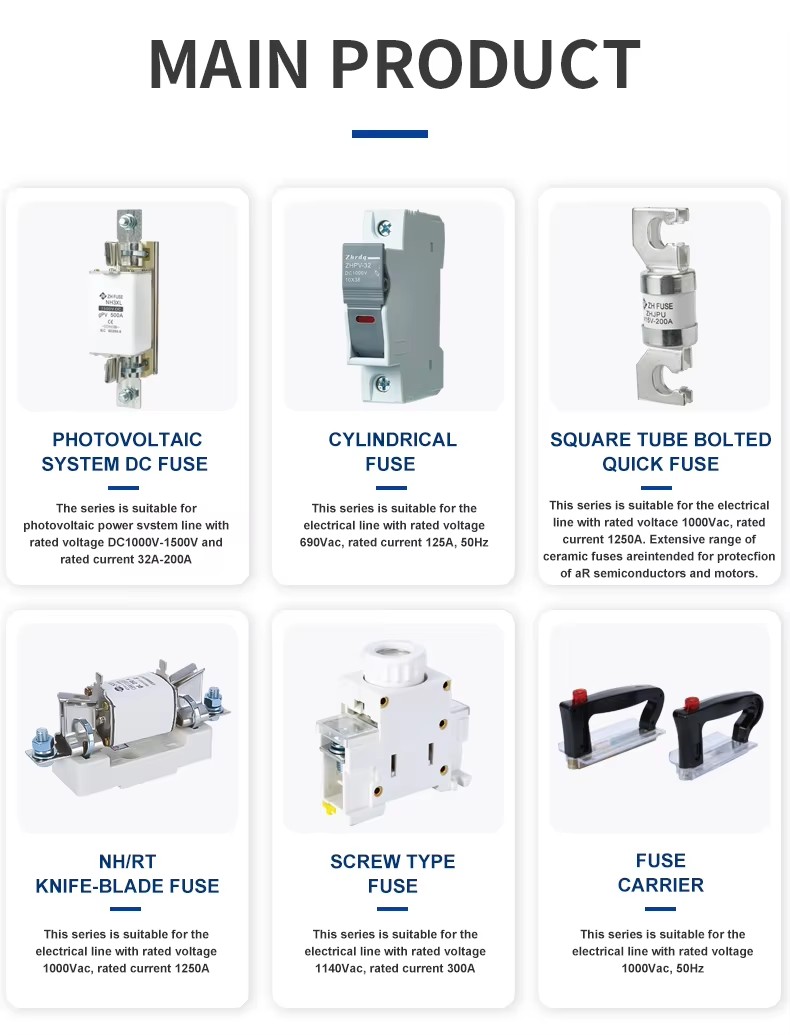 De strukturelle egenskapene til ZHPV-125 1000V DC sikringsbase og sikringskoblinger 22 × 58mm sylindrisk keramisk sikringsbunn i det fotovoltaiske systemet er som følger. Denne serien med sikringer består av en sikringslenke og en sikringsholder. Det variable tverrsnitts sikringskroppen laget av rent kobberark (eller kobbertråd, sølvtråd, sølvark) er forseglet i et sikringsrør laget av keramisk eller epoksy-glassrør med høy styrke, fylt med kjemisk behandlet kvartssand som et bue som slukker medium. De to sidene av sikringskjernen er pålitelig koblet til endeplaten gjennom spotsveising, og danner en sylindrisk hetteformet struktur. ZHPV-125 1000V DC sikringsbase er laget av harpiks eller plastskall presset med elektrisk støt, inkludert et sikringselement, som er forbundet med å nagle som en støtte for riktig størrelse sikringskomponent. Denne serien med sikringer har fordelene med lite volum, enkel installasjon, sikker bruk og vakkert utseende.